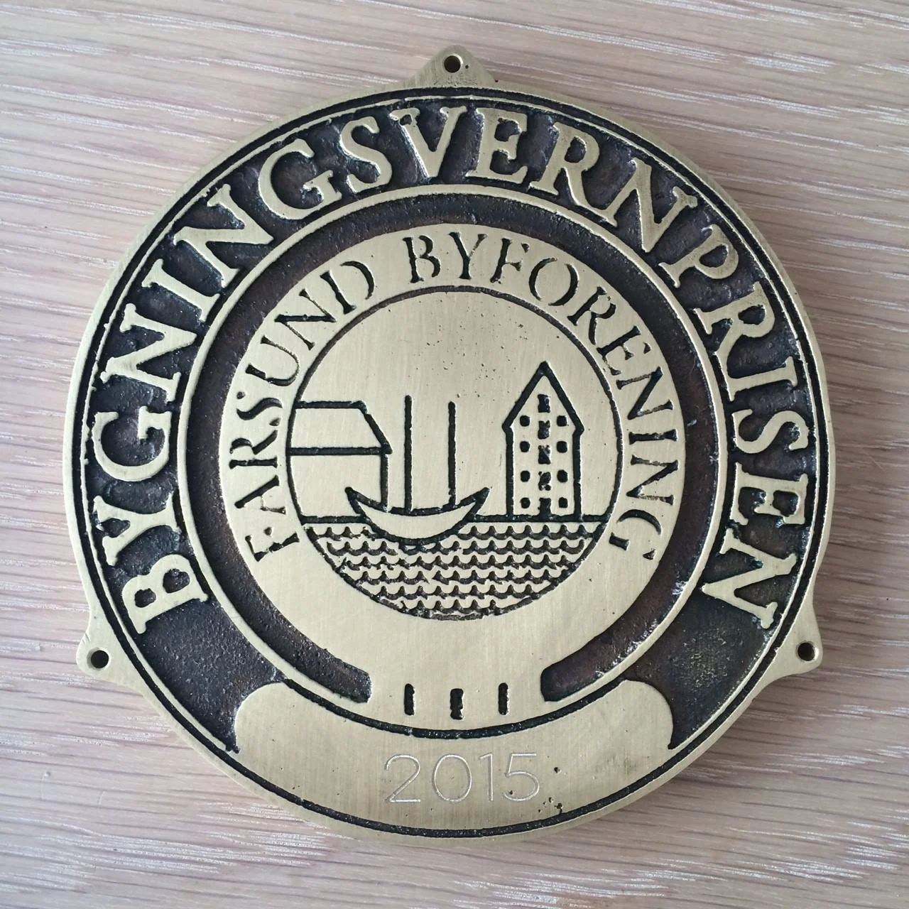 3. Prisen er en kobberplate med Byforeningens emblem og med følgende tekst: Bygningvernsprisen … (årstall)